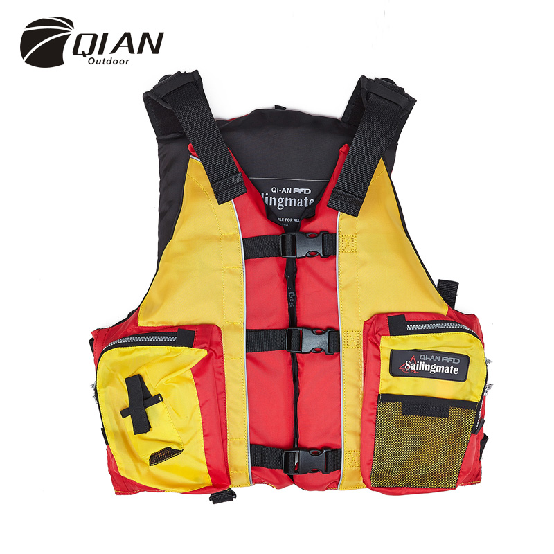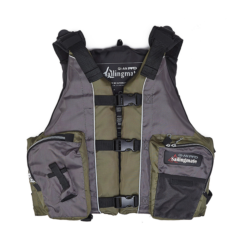 QA-9066 Fishing Life vest -Durable polyester cover fabric -Inherent foam floatation -Fashionable design and colors -38mm adjustable waist belt with side release buckle -50N of Buoyancy -Side pockets for small toolings