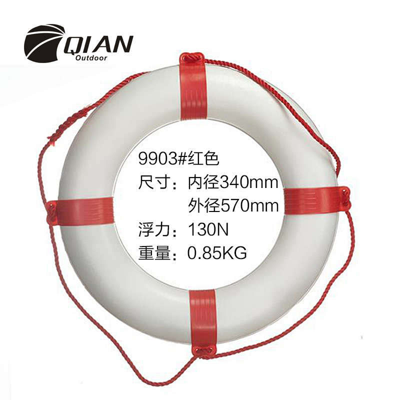 QA-9903 Life Ring Cover: PVC material Inside: Polyurethane foam Outer Dia: 650mm/570mm Inner Dia: 390mm/350mm Thickness: Over 105mm Weigh: Over 1.0kg/0.7kg Color: Red/White or Blue/White